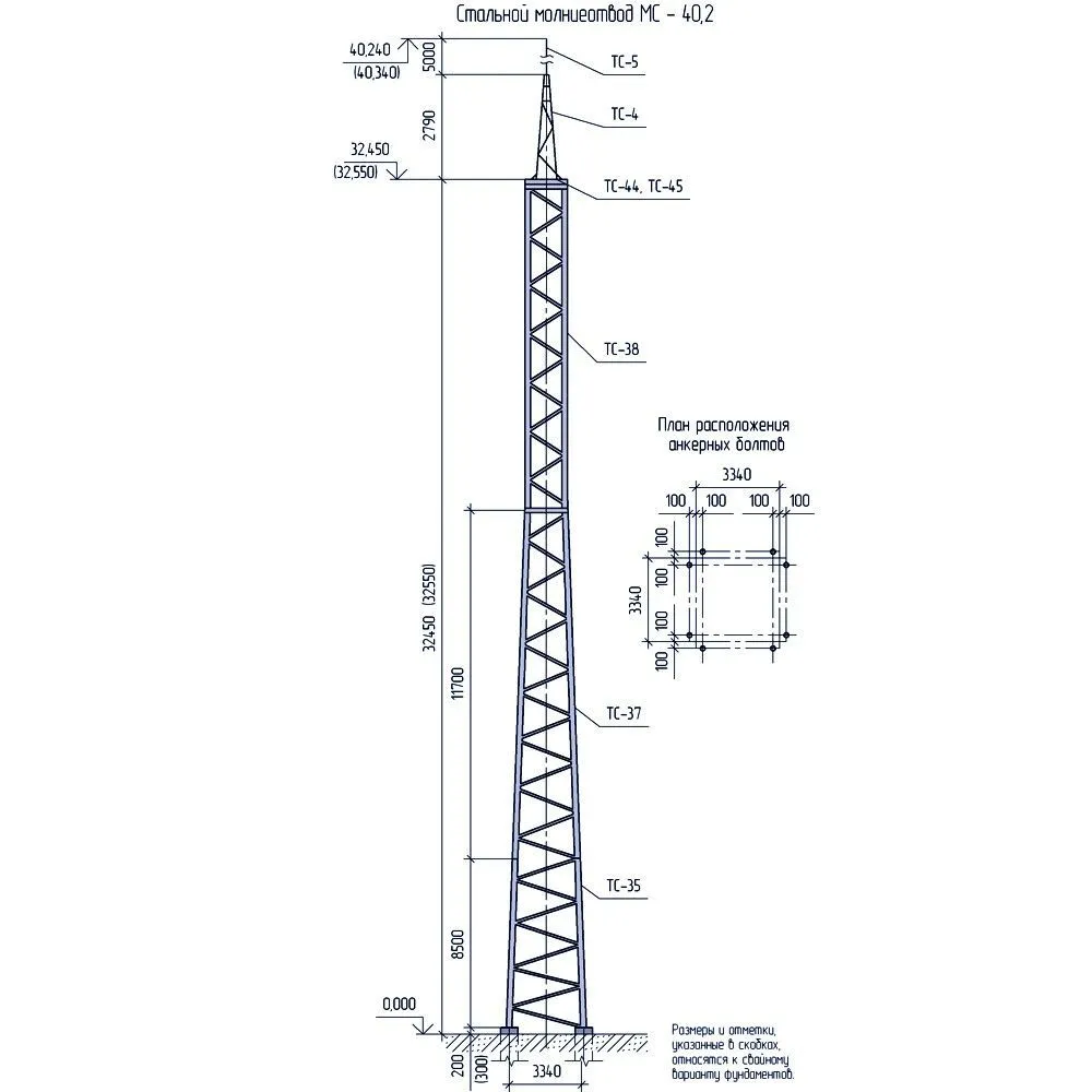 Молниеотвод стальной МС-40,2 — отдельно стоящая конструкция для молниезащиты открытых распределительных устройств (ОРУ). Изготавливается по серии 3.407.9-172 из углового проката.